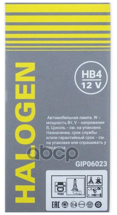 GANZ GIP06023 Галогенная лампа HB4 12v 55w (P22d) .1 шт. информация: