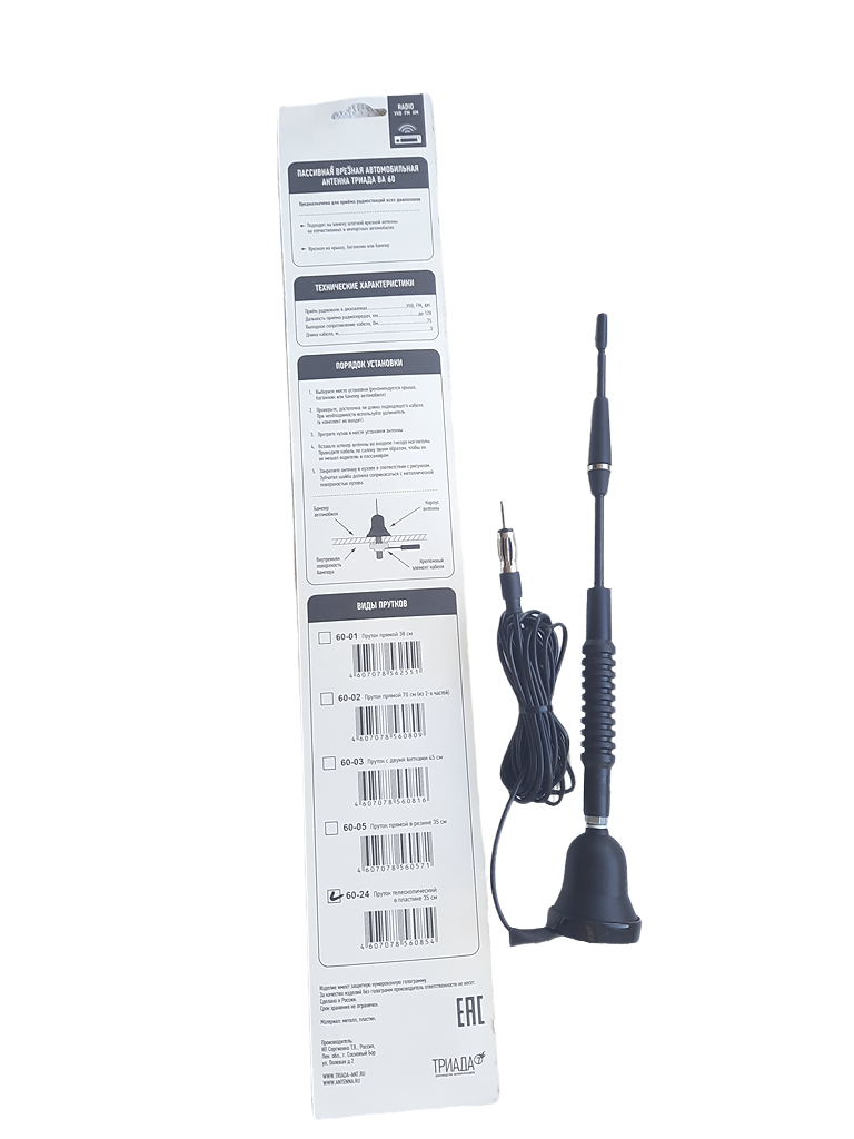 Отзывы на Врезная автомобильная антенна для радио Триада ВА 60-24, пруток телескопический 25-55 см