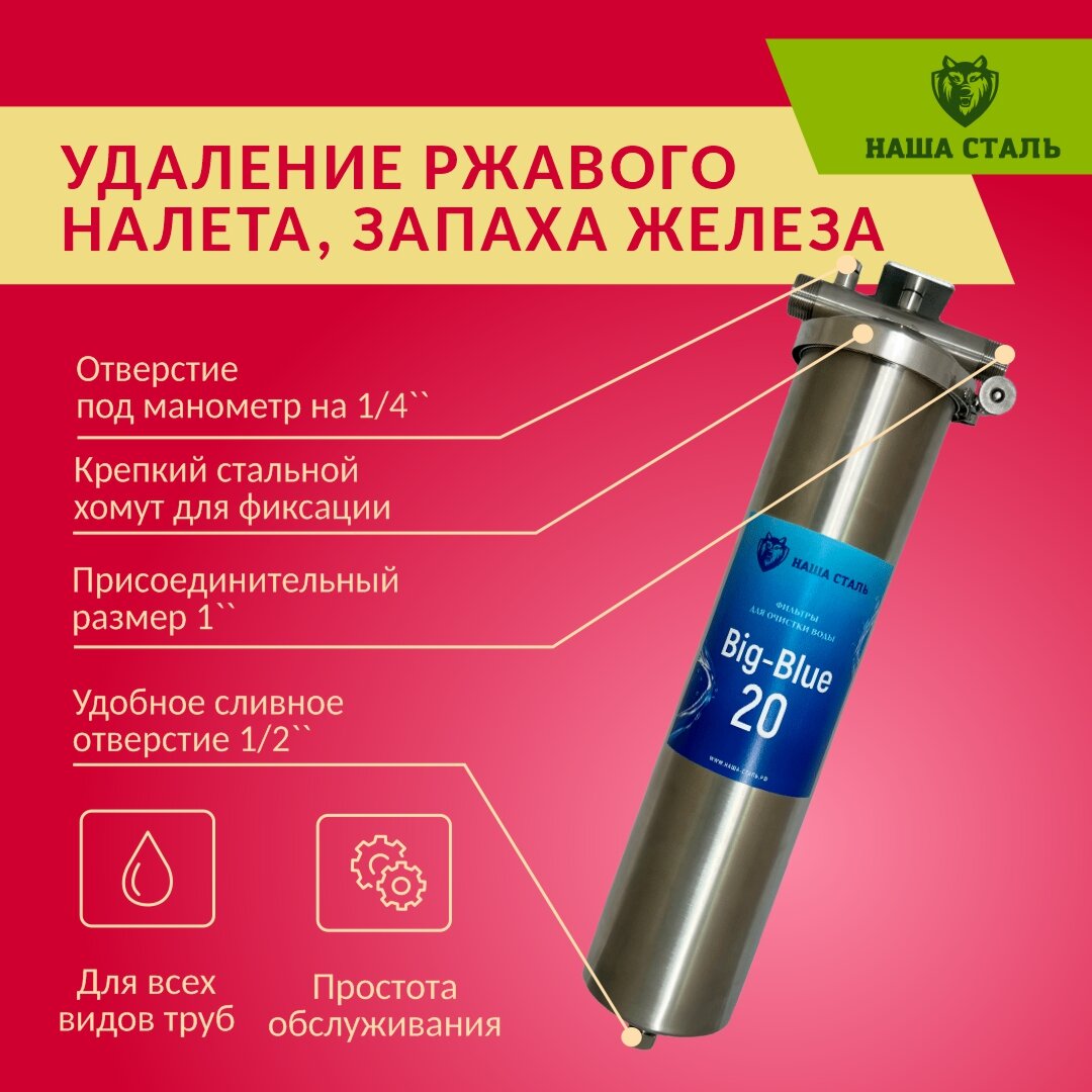 Отзывы на Фильтр из нержавеющей стали магистральный обезжелезивающий наша сталь Big-Blue 20