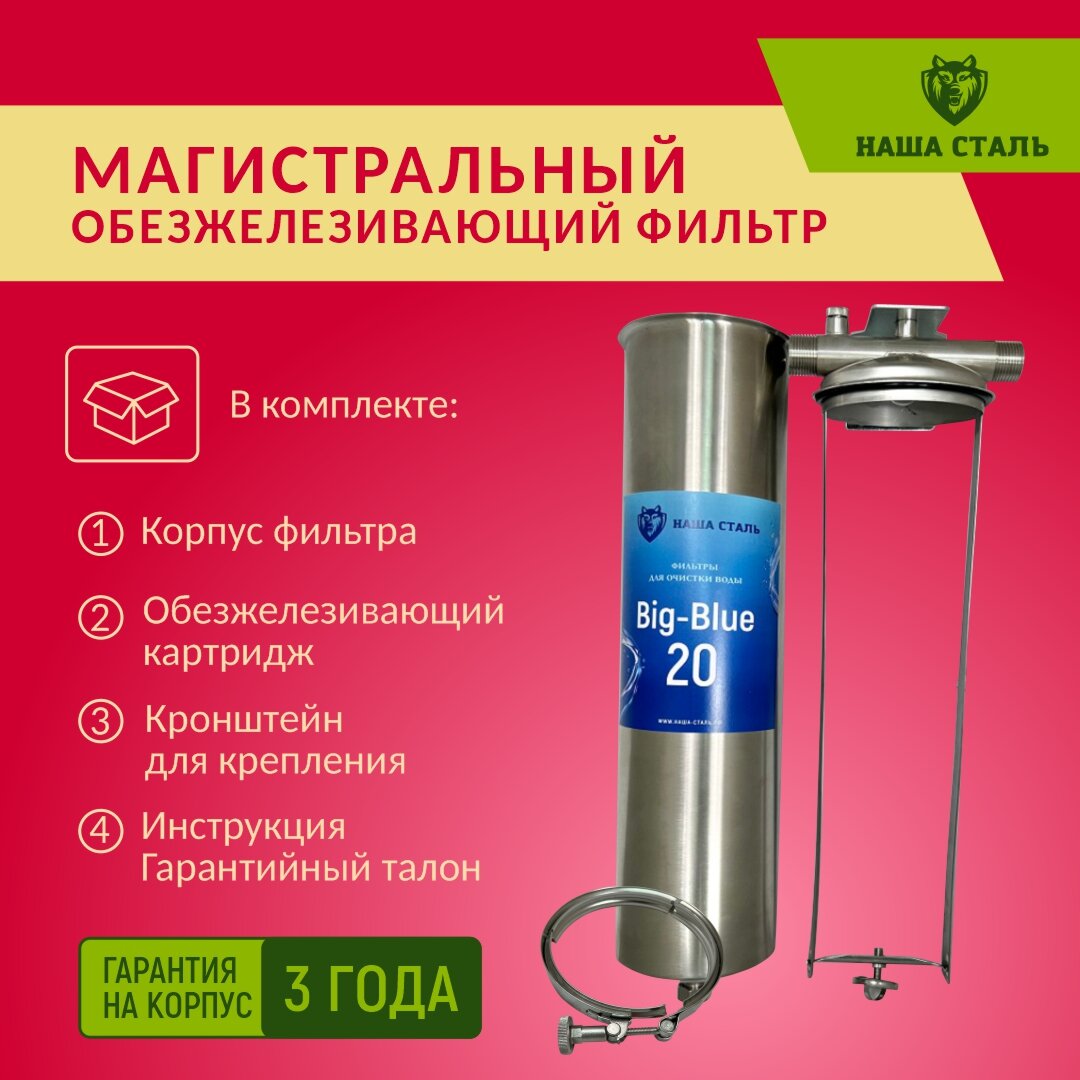 Фильтр из нержавеющей стали магистральный обезжелезивающий наша сталь Big-Blue 20 информация: