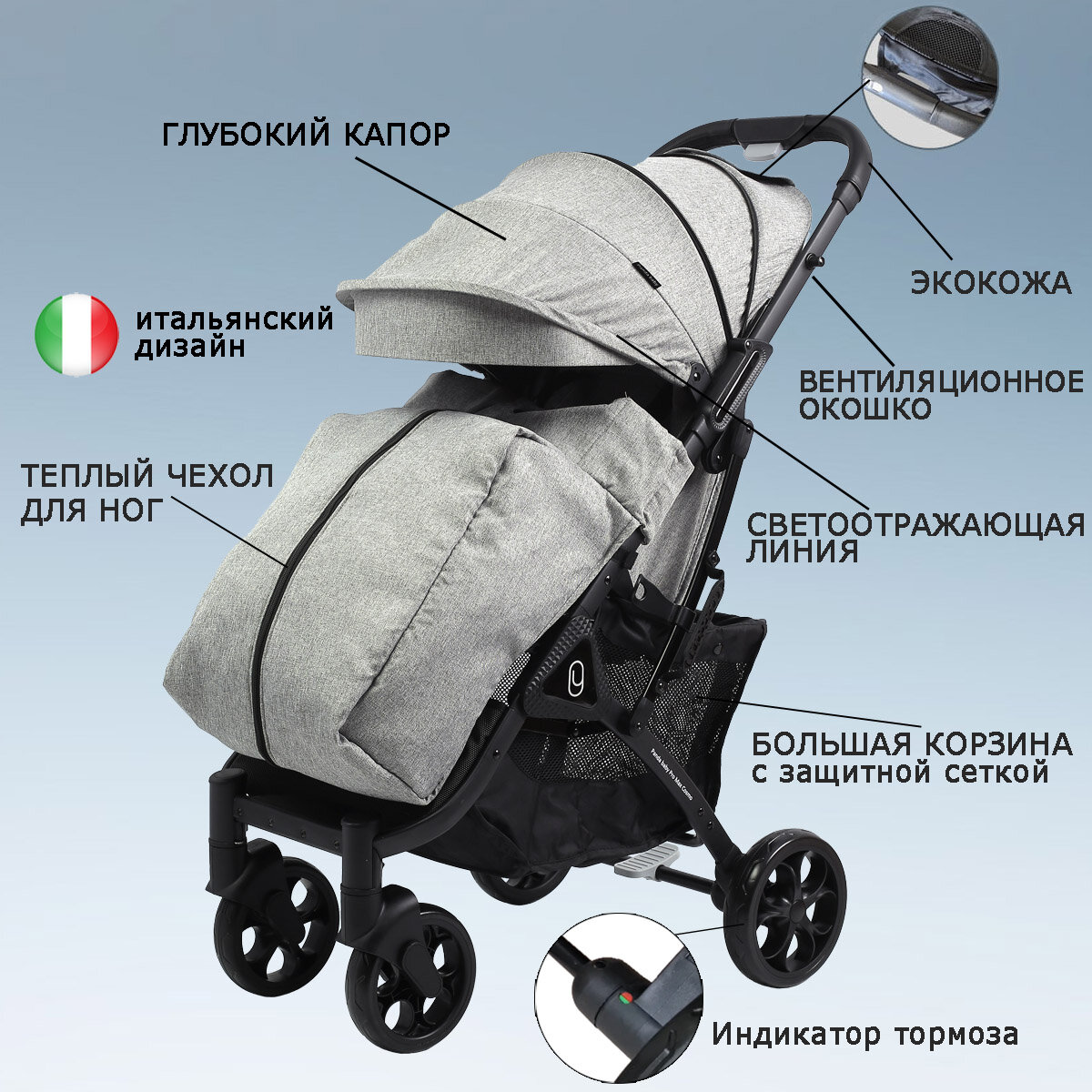 Детская прогулочная коляска с большими колесами и ручкой как в чемодане для путешествий до 4 лет Panda Baby Pro Max Cosmo (светло-серый) информация: