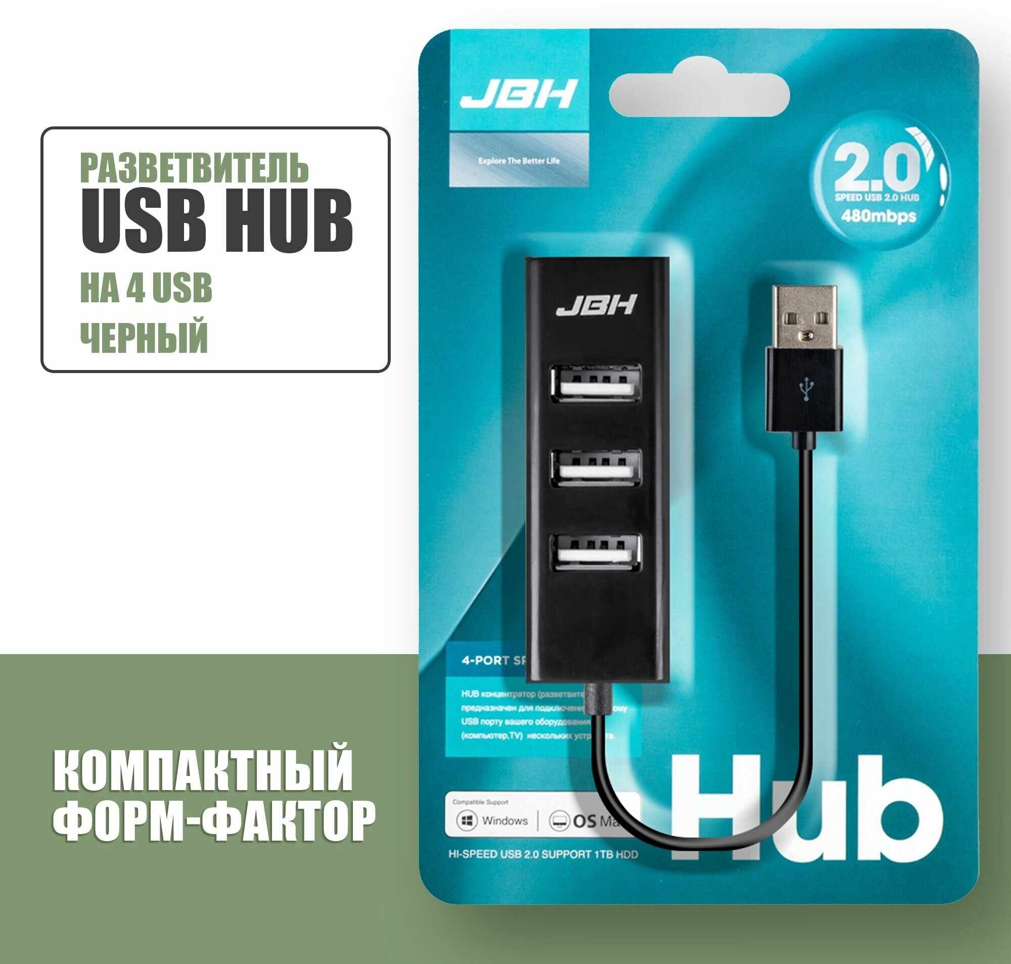 Отзывы на USB-концентратор USB 2.0 на 4 порта IS974640 480 Мбит/сек / HUB разветвитель / Хаб на 4 USB (0,1 м) / черный