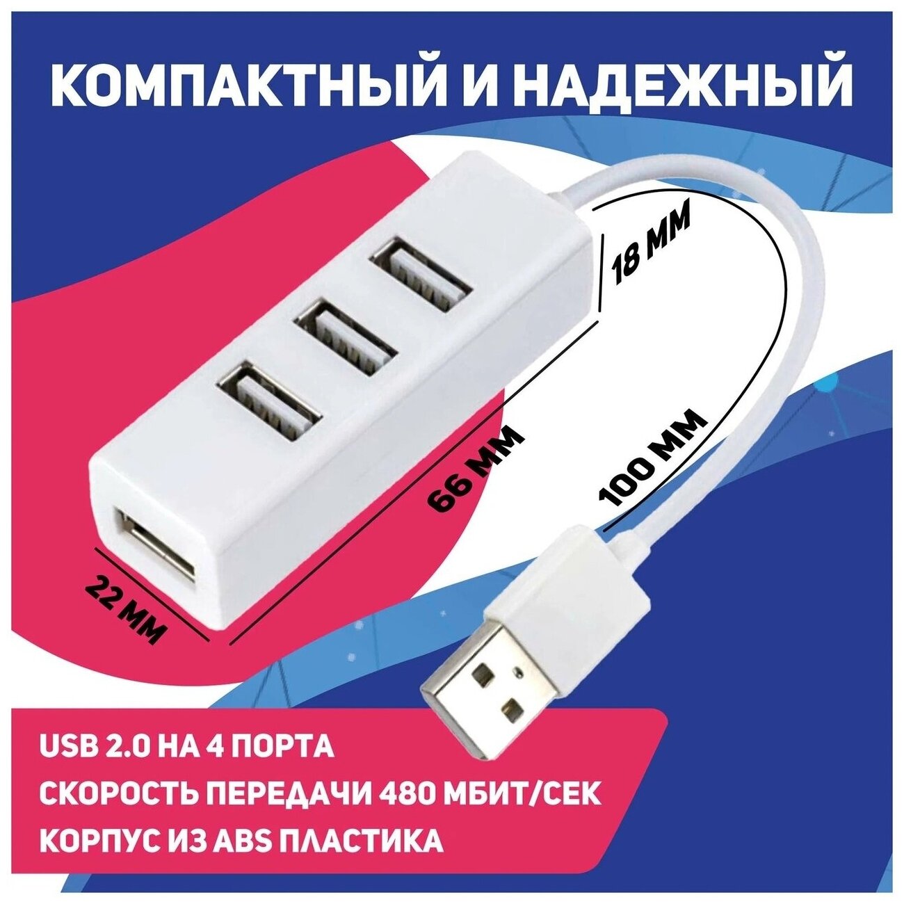 10 цен на USB-концентратор USB 2.0 на 4 порта IS974640 480 Мбит/сек / HUB разветвитель / Хаб на 4 USB (0,1 м) / белый
