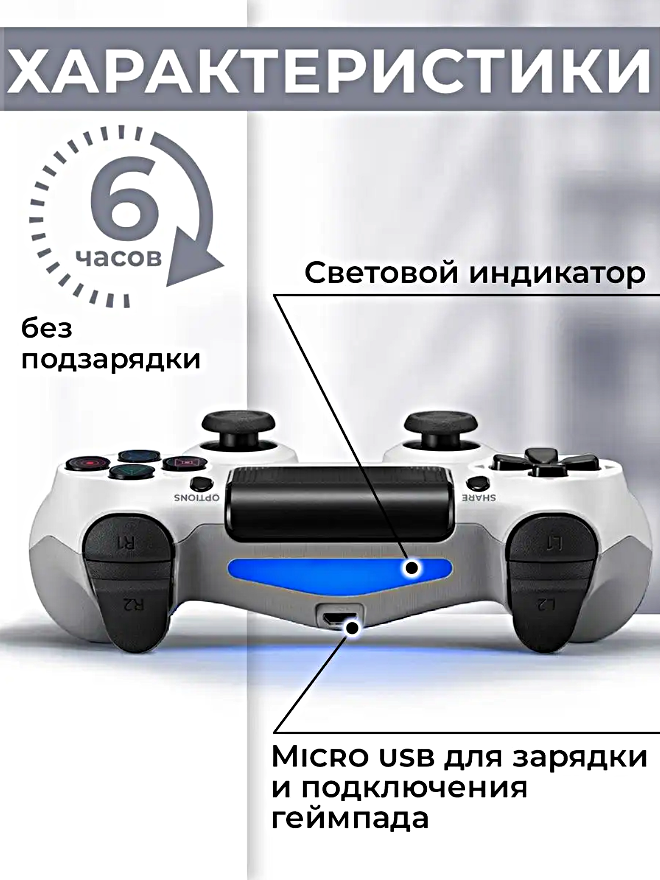 Геймпад для PlayStation 4, Джойстик совместимый с PS4, PC и Mac, устройства Apple, устройства Android, Белый информация: