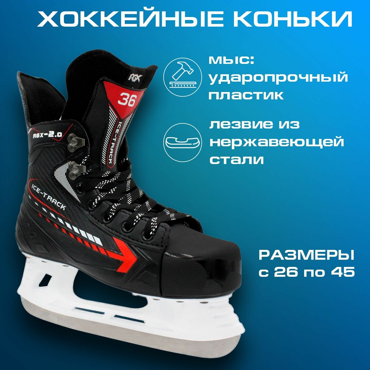 Хоккейные коньки RGX-2.0 ICE-Track (для проката) Размер : 45 6 550 ₽