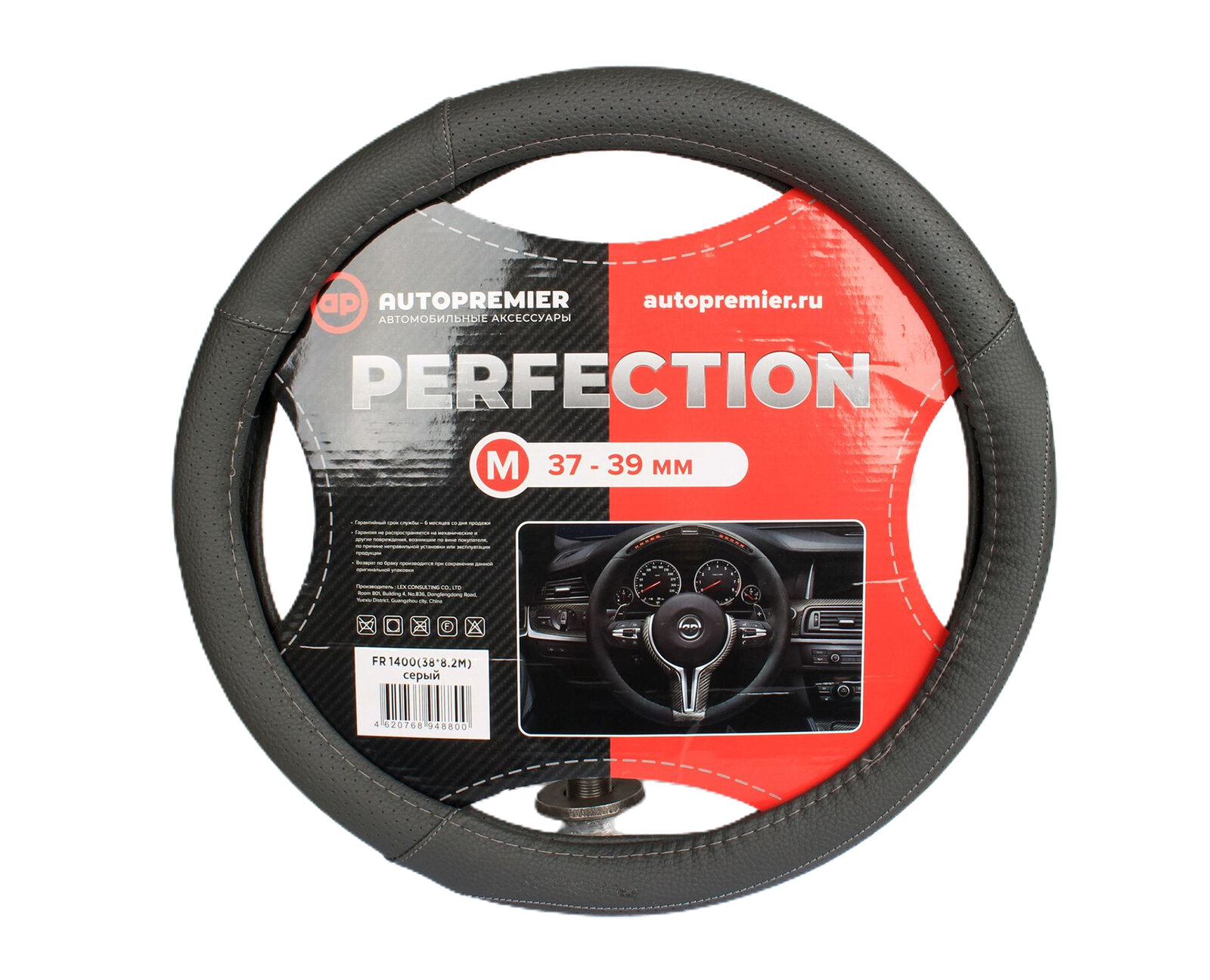 Оплетка руля "M" d37-39см "AUTO" кожа PU, перфорир.вставка,серая PREMIER FR1400M информация: