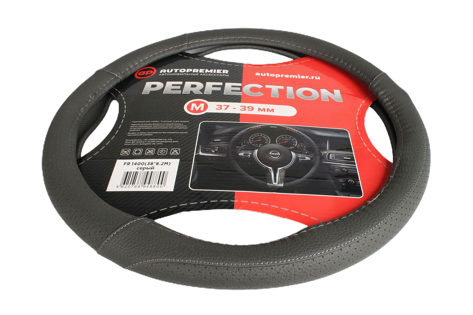Отзывы на Оплетка руля "M" d37-39см "AUTO" кожа PU, перфорир.вставка,серая PREMIER FR1400M