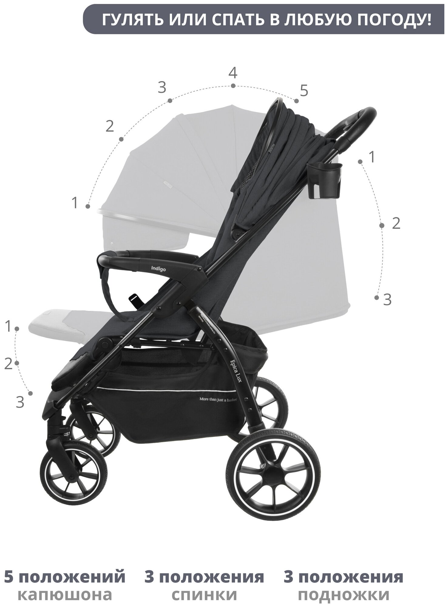 Коляска прогулочная Indigo Epica Lux S всесезонная, темно-серый информация: