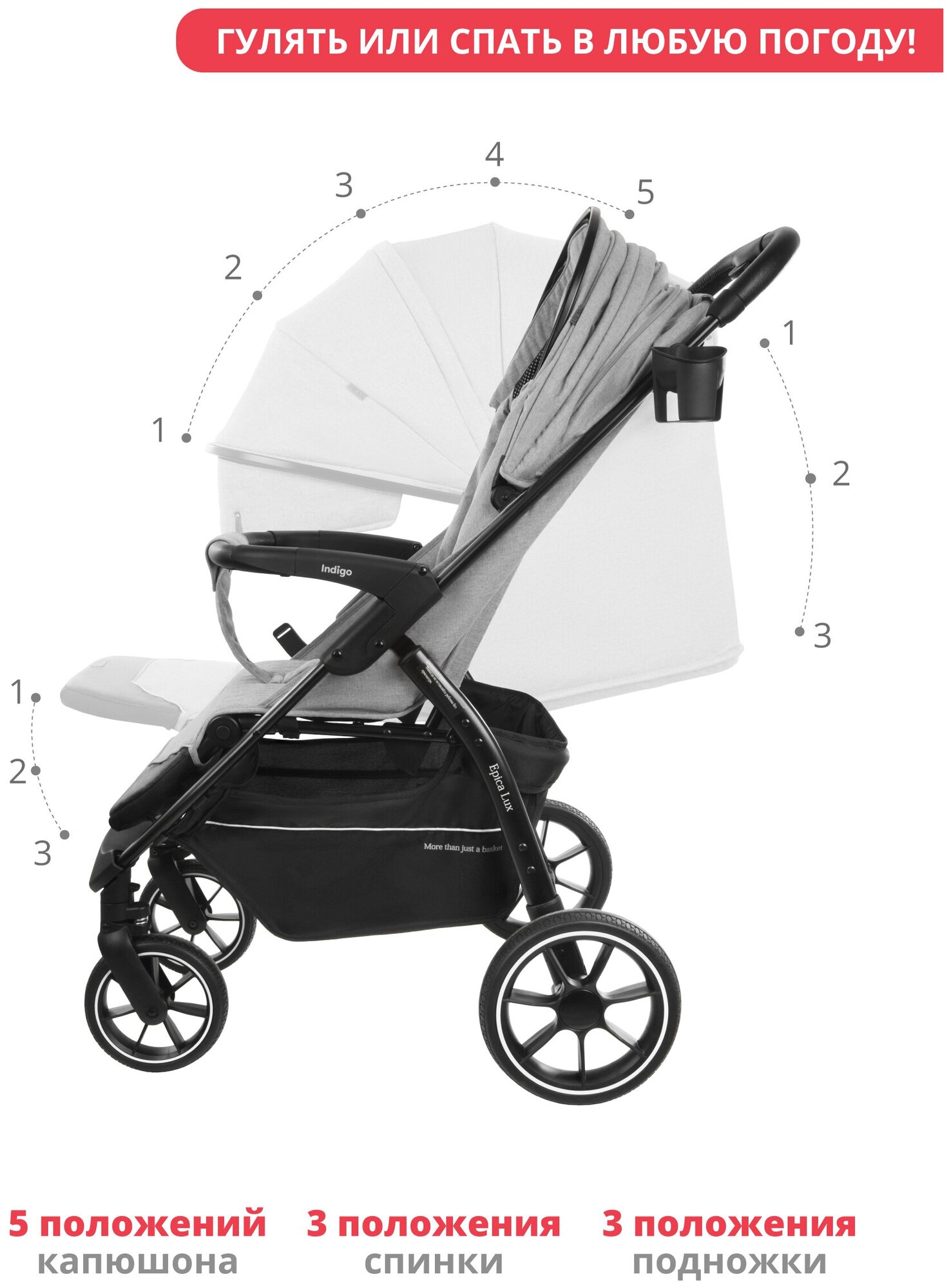 Коляска прогулочная Indigo Epica Lux S всесезонная, светло-серый информация: