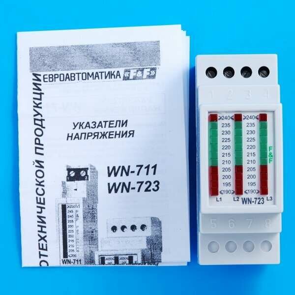 Указатель напряжения WN-723. Трехфазный. Светодиодная шкала. Диапазон индикации 190-240В. Монтаж на DIN-рейке 35 мм. информация: