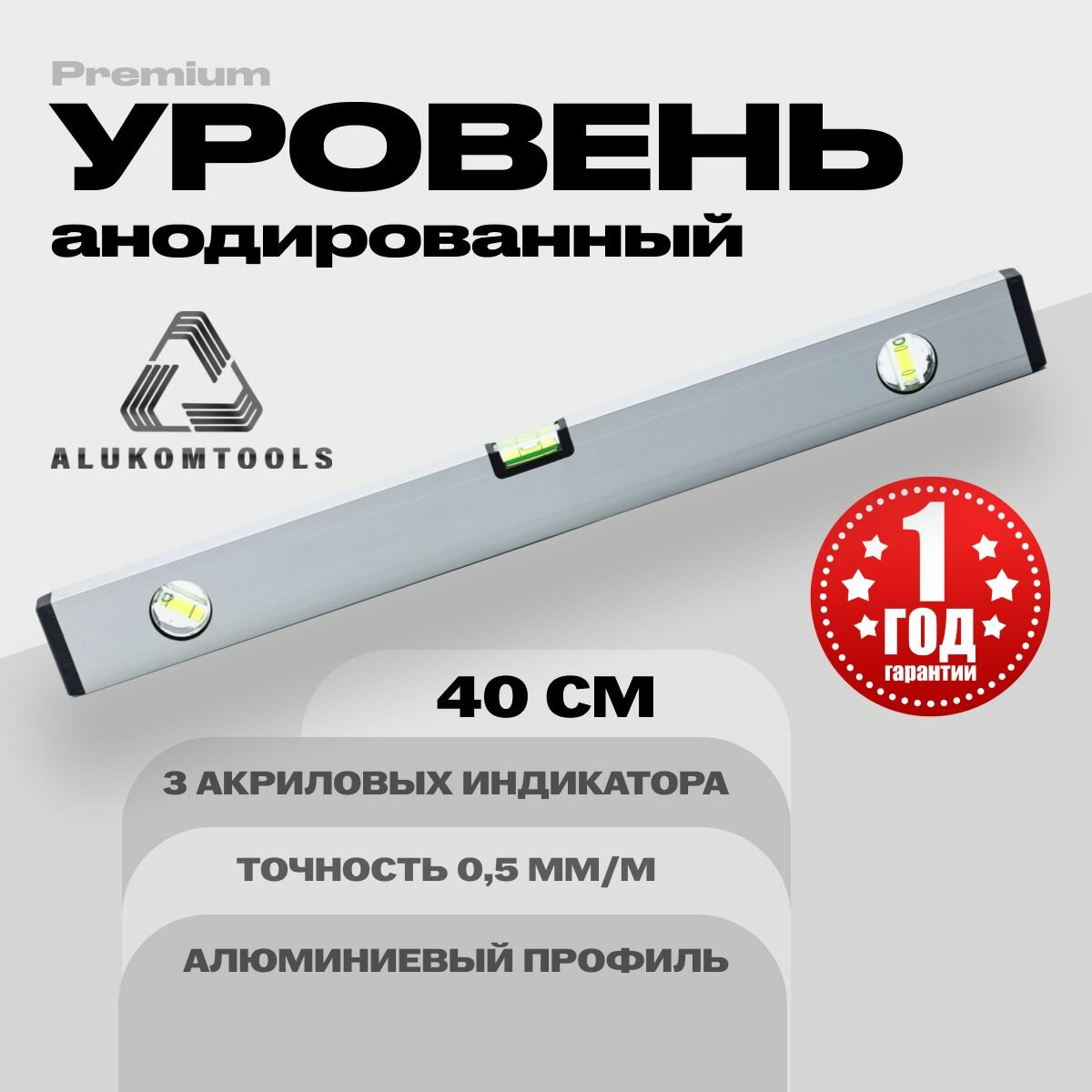Уровень анодированный 40 см "ALUKOMTOOLS PREMIUM" информация: