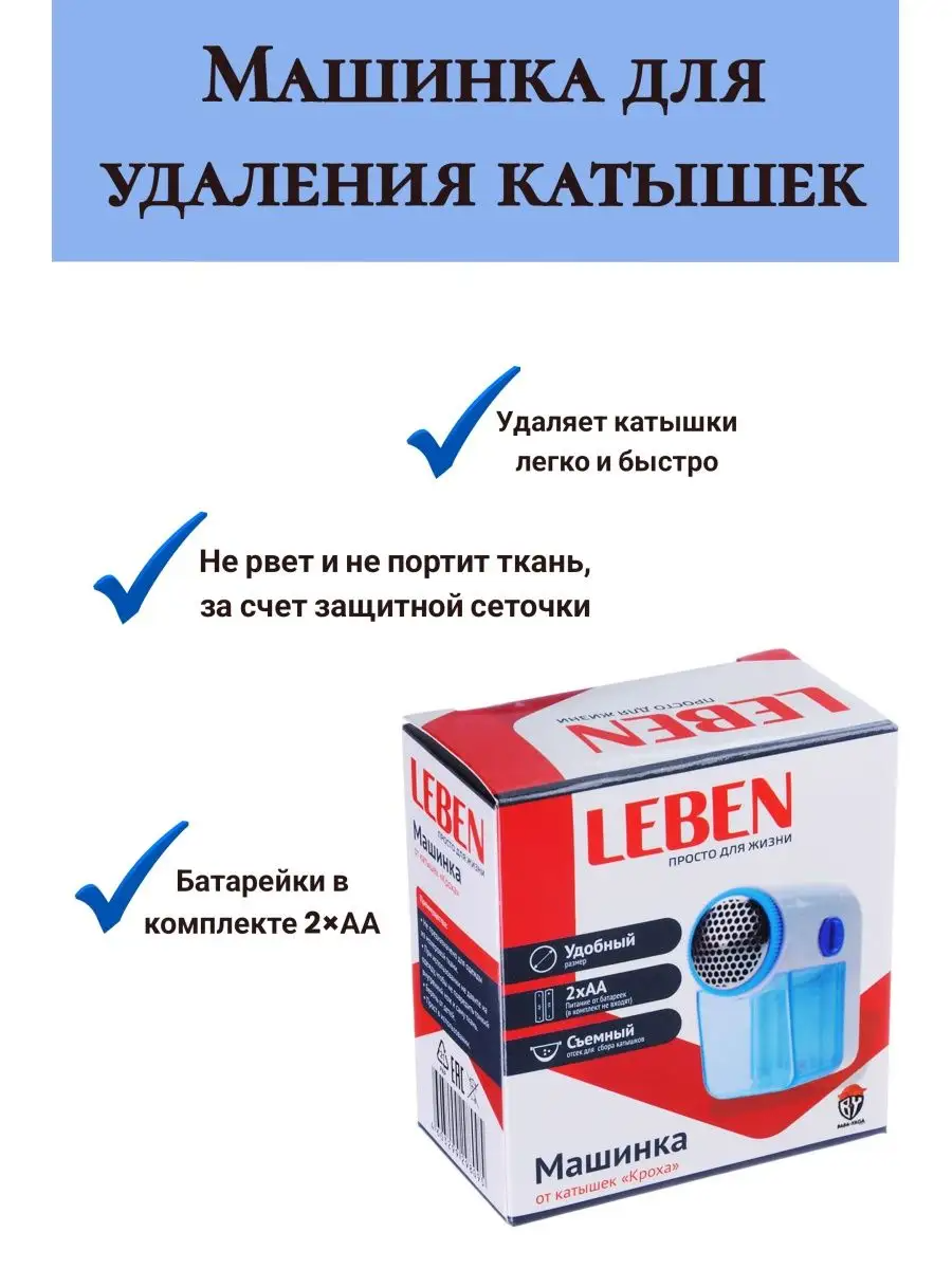 10 цен на LEBEN / Машинка для удаления катышков, питание: 2 батарейки типа АА