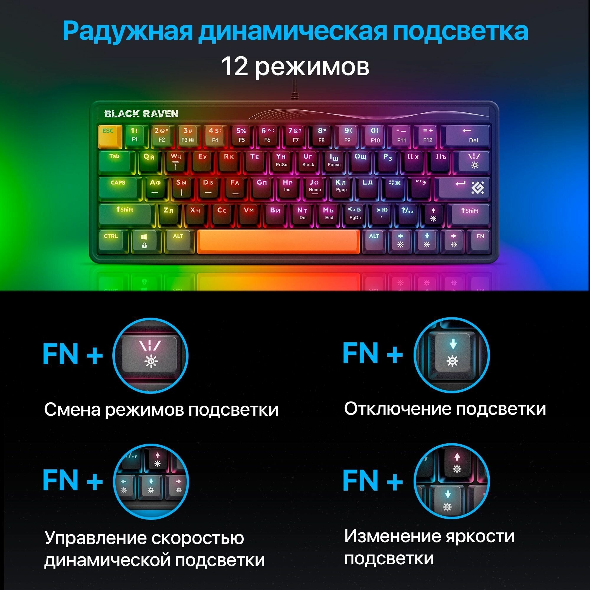 Механическая клавиатура Defender Black Raven GK-417 RU,3цвета, радужная,63кн 1 717 ₽