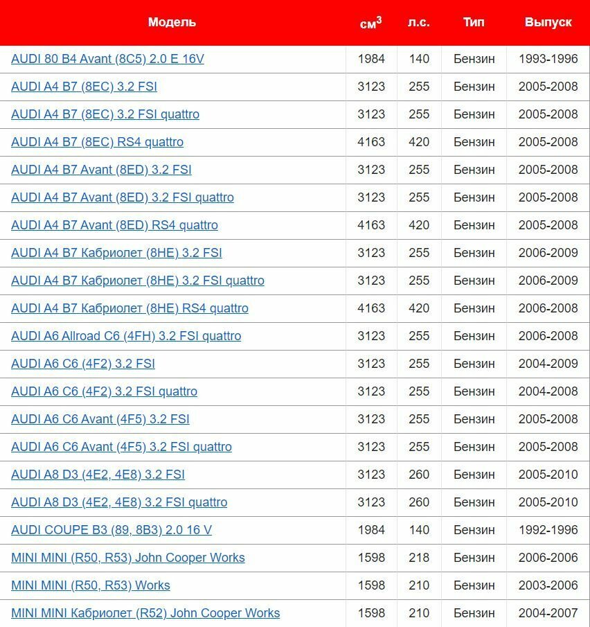 | Марка автомобиля | Audi / BMW |