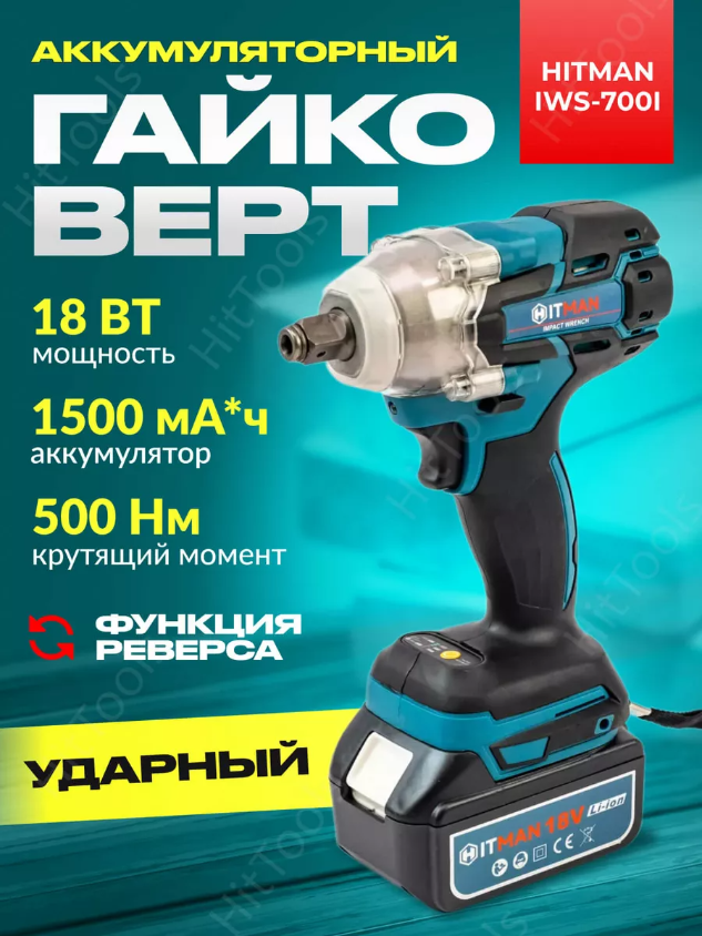 Отзывы на Аккумуляторный гайковерт/винтоверт бесщеточный ударный Hitman HT/IWS 700i (Li-ion-2шт, 1500 мА*ч, 500Нм, ударная головка 21мм, З/У, в кейсе)