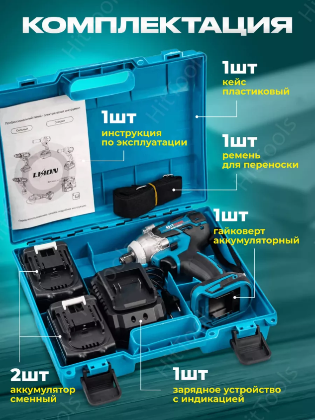 | Комплектация | Кейс, 2 аккумулятора, зарядное устройства, головка на 21, ремешок. |