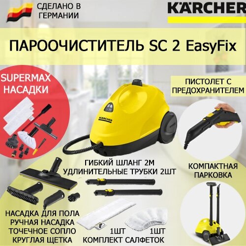 Отзывы на Пароочиститель KARCHER SC2 EasyFix, мощность1500 Вт, максимальное давление 3,2 бар, объем 1 л, желтый, 1.512-063.0