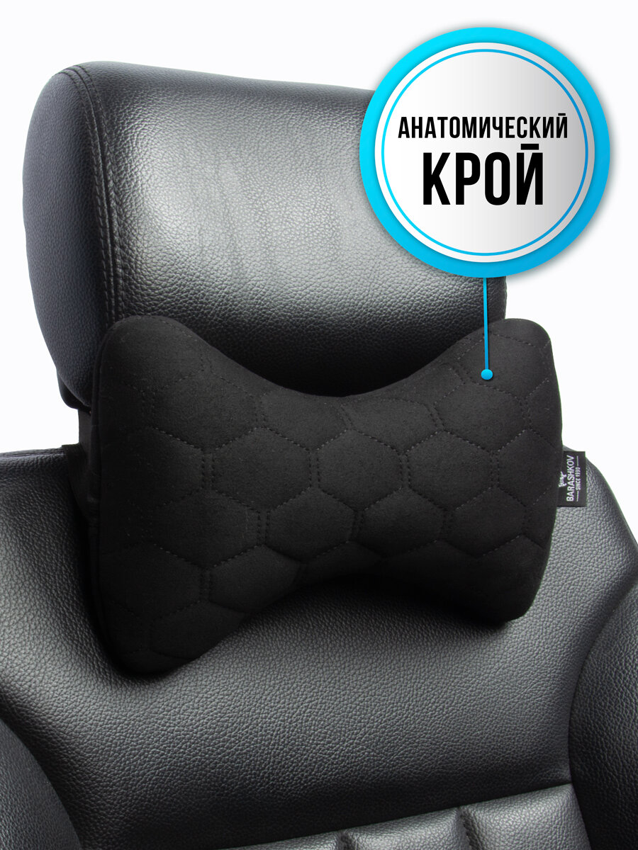 Отзывы на BARASHKOV/ Подушка для авто "CLASSIC" из алькантары под шею на подголовник. Комплект 2 шт. Подушка косточка под голову. Темно-серый