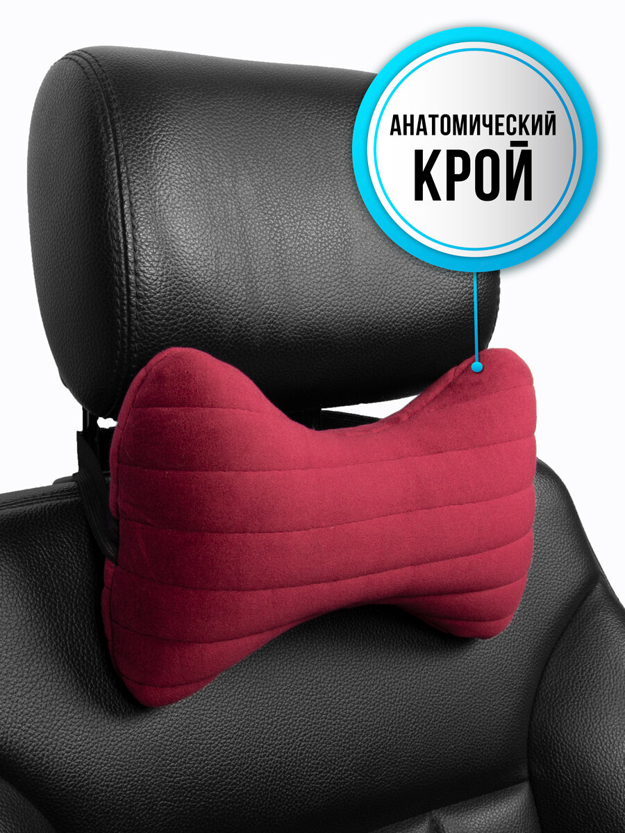 10 цен на BARASHKOV/ Подушка для авто "CLASSIC" из алькантары под шею на подголовник. Комплект 2 шт. Подушка косточка под голову. Бордовый, красный