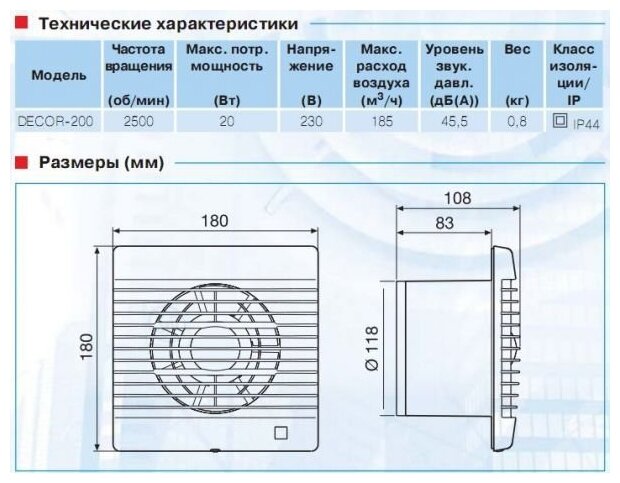 Вентилятор вытяжной Soler & Palau DECOR 200 C, ivory 20 Вт информация: