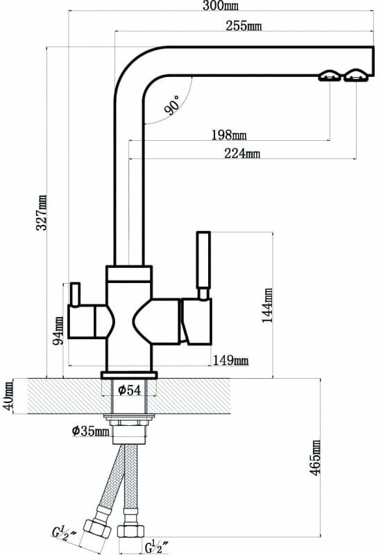 Смеситель для кухни с подключением к фильтру с питьевой водой из нержавеющей стали SUS304 Calorie CAL50116-3