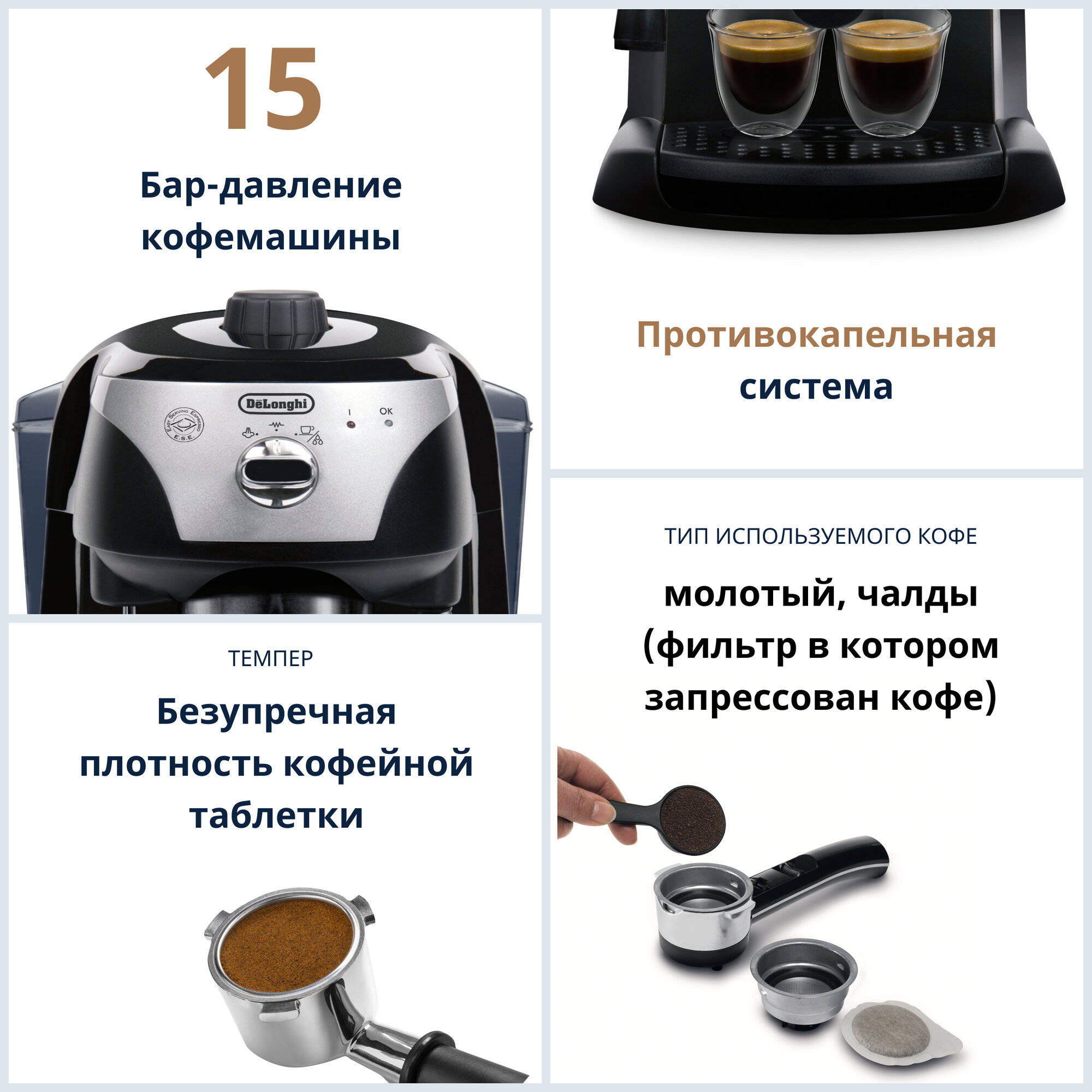 Кофемашина рожковая DeLonghi EC221.B 1100 Вт, черный информация: