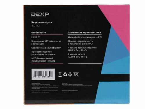 Внутренняя звуковая карта DEXP 4.0 PCI информация: