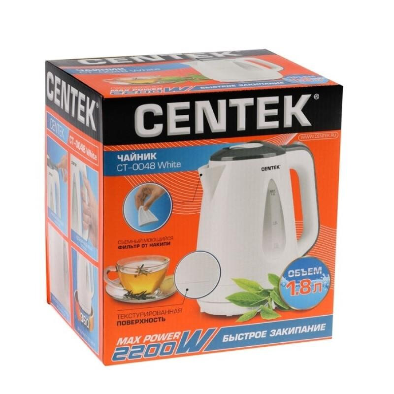 10 цен на Чайник Centek CT-0048 White 1,8л, 2,2кВт, диск