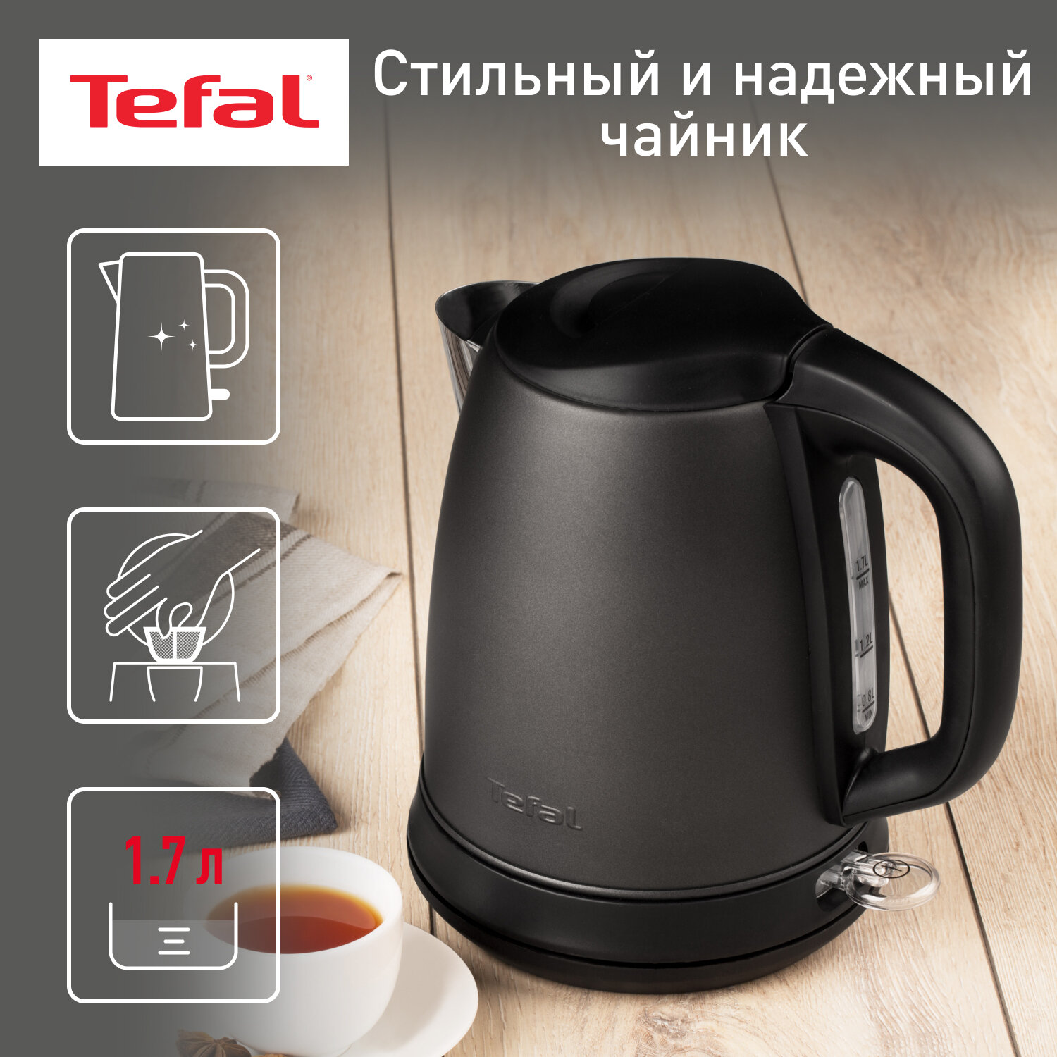 Tefal Чайник KI270930 Чайник, 1.7л, 2400Вт, черный 4 704 ₽