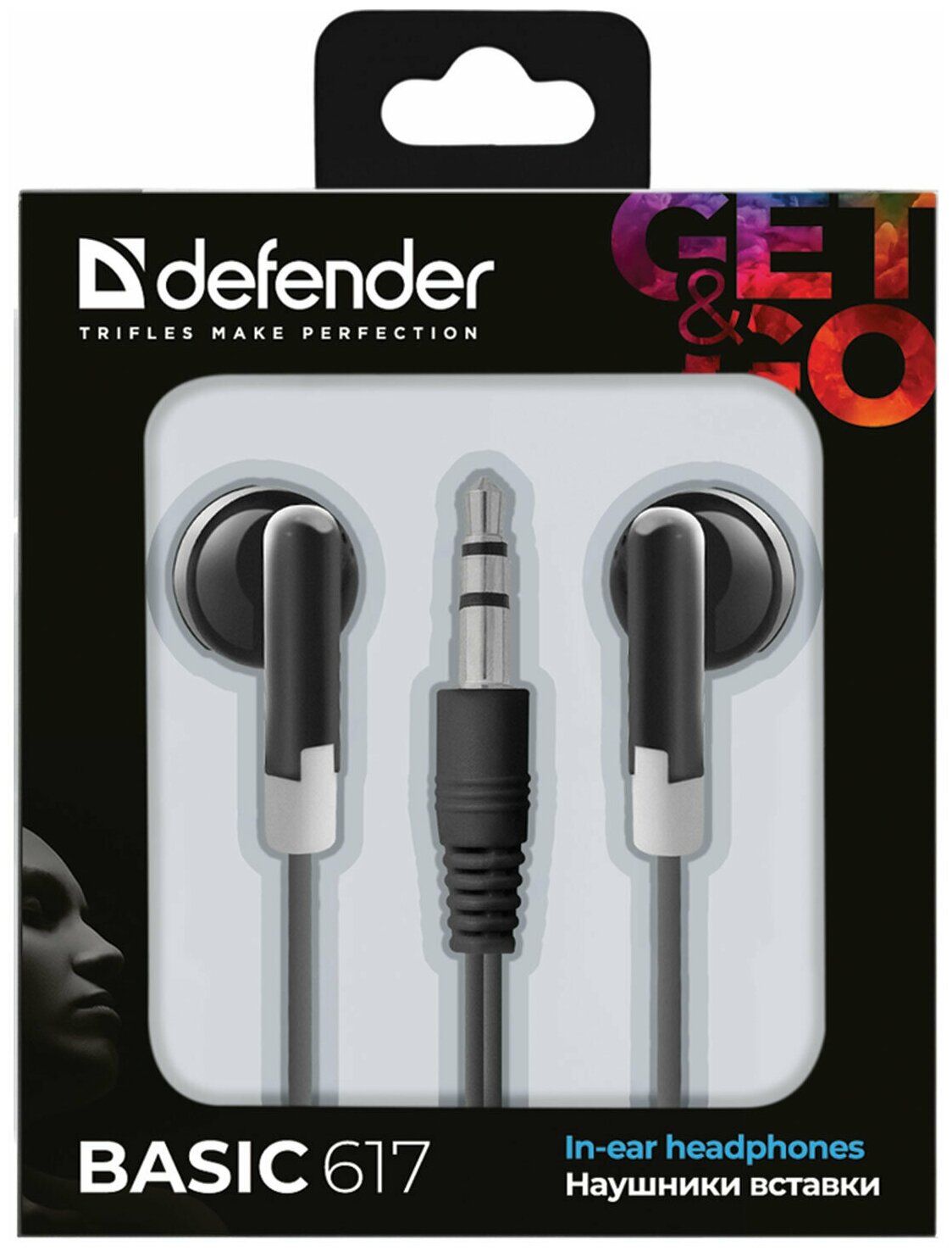 Наушники DEFENDER #1 Basic 617, проводные, 1,1 м, вкладыши, черные, 63617 - 1 шт.