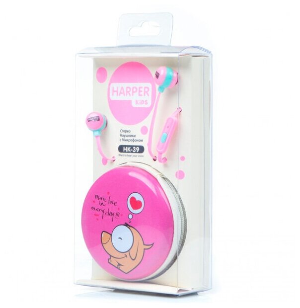 Наушники Harper KIDS HK-39, проводные, вакуумные, микрофон, 3.5 мм, 96 дБ, кейс, розовые 1 107 ₽