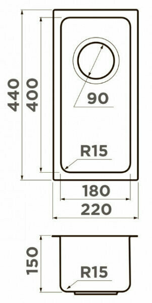 Кухонная мойка OMOIKIRI Tadzava 22-U/I-IN (220 x 440 мм), подстольная, нержавеющая сталь Omoikiri 4993734 17 288 ₽