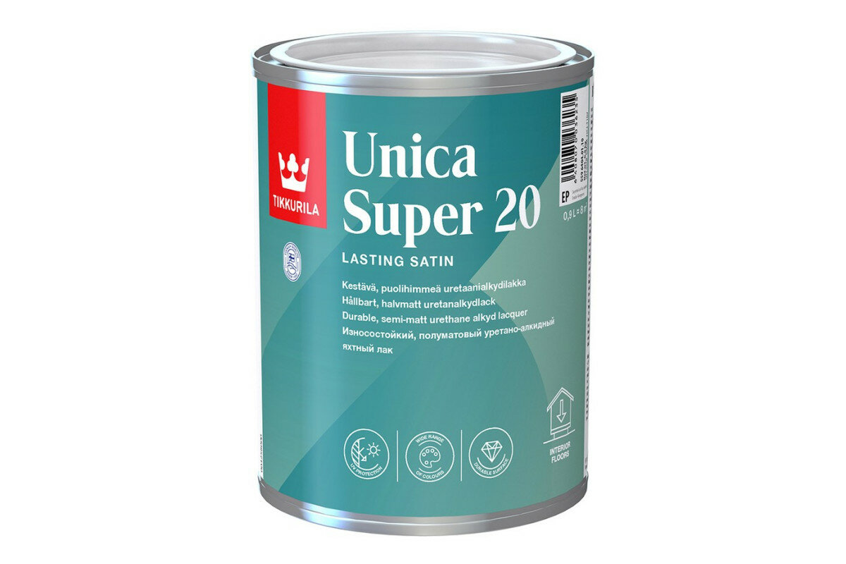 Tikkurila Unica Super 20 / Тиккурила Уника Супер яхтный лак полуматовый 0,9л, 1 349 ₽
