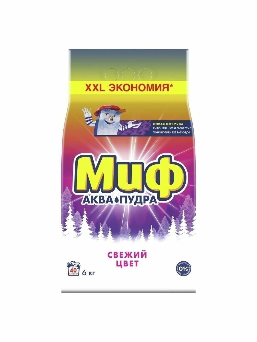 Миф Аквапудра Свежий Цвет Стиральный Порошок 6 кг (40 Стирок)