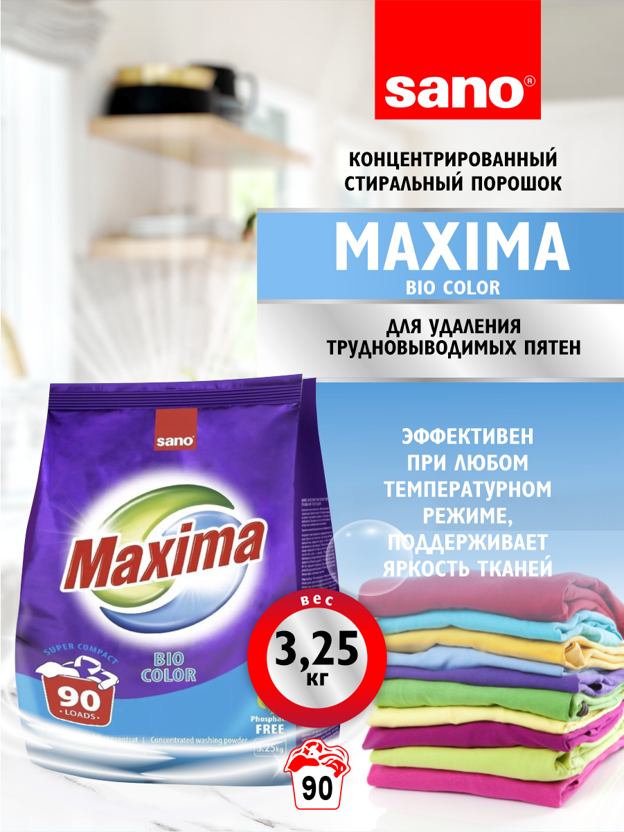 Стиральный порошок Sano Maxima Bio Color для цветного белья, концентрированный, 3.25 кг информация: