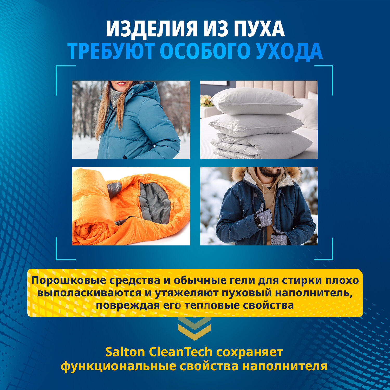 Гель для стирки пуховиков, курток, одеял, подушек, изделий из синтепона и пера Salton CleanTech, 500 мл 391 ₽