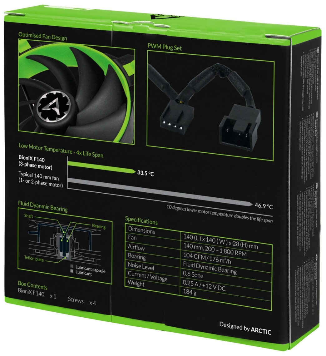 Вентилятор для корпуса Arctic BioniX F140, черный/зеленый информация: