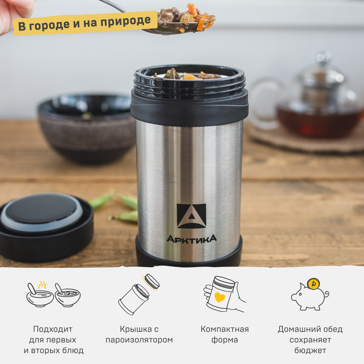 Термос-кружка для еды и напитков Арктика 402-500 серебристый 0,5 литров компактный термос для заваривания 1 260 ₽