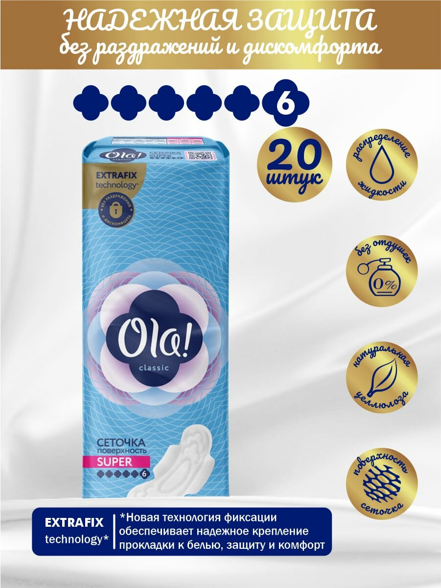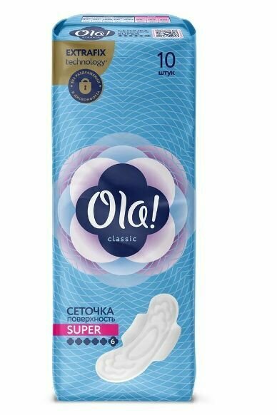 Ola! прокладки Classic Wings Super Поверхность сеточка, 6 капель, 10 шт.