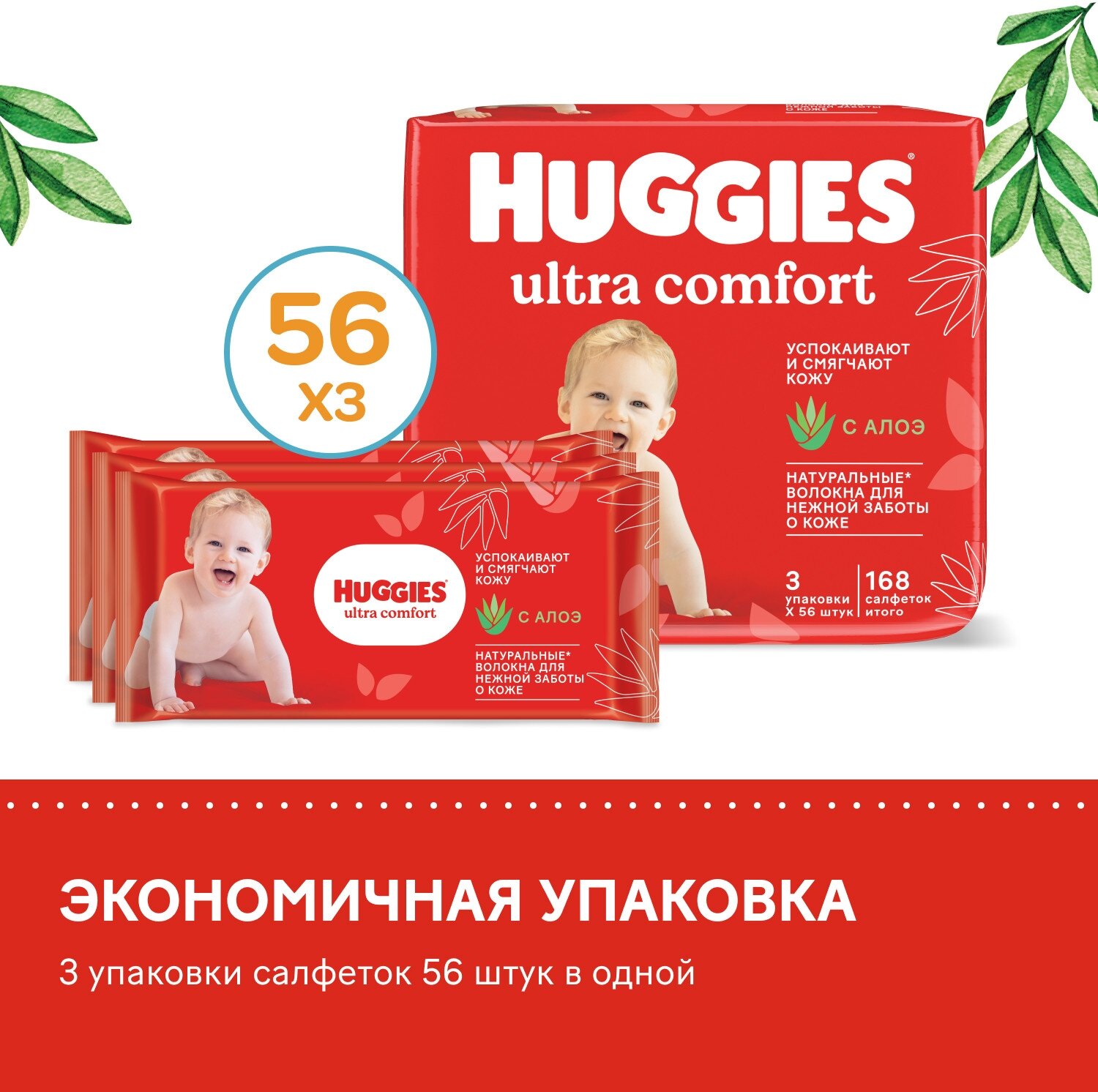 Huggies Ultra Comfort Влажные детские салфетки с экстрактом алоэ вера 56 3 168шт