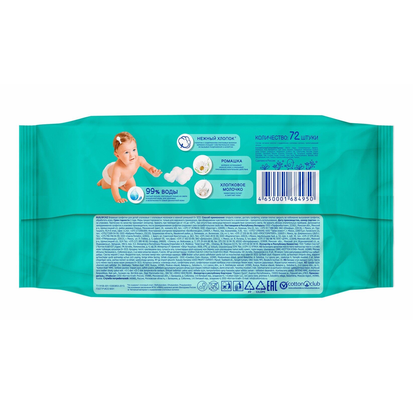 Детские влажные хлопковые салфетки коттон клаб 0+ с экстрактом ромашки и хлопковым молочком, 72 шт