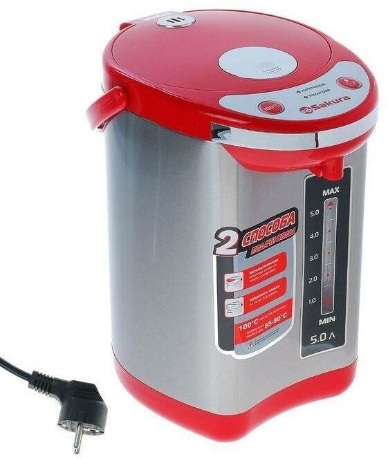 Термопот SAKURA SA-336RS 5 л, 750 Вт, металл/красный