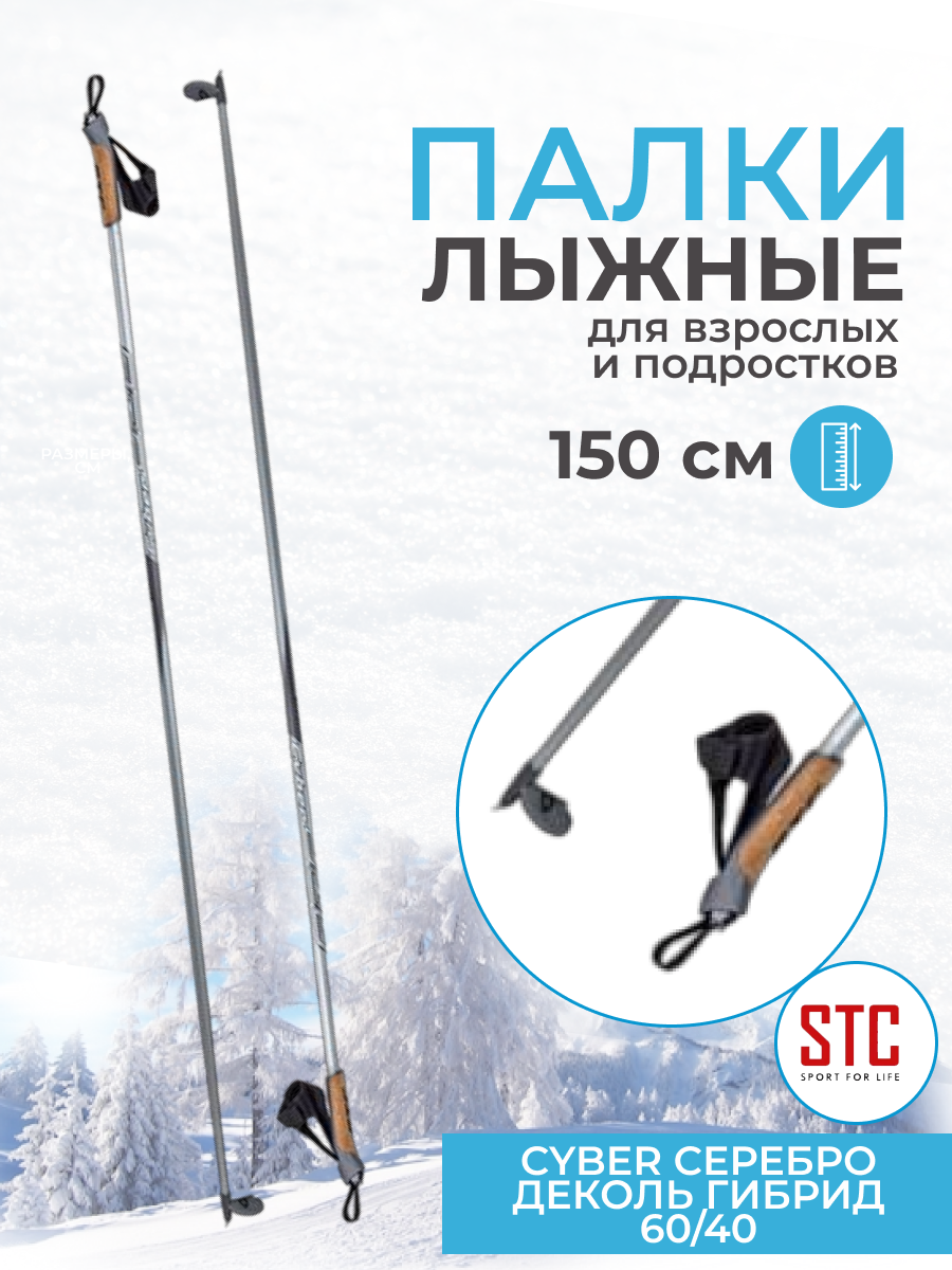 10 цен на Лыжные палки STC Cyber серебро 150 деколь гибрид 60/40