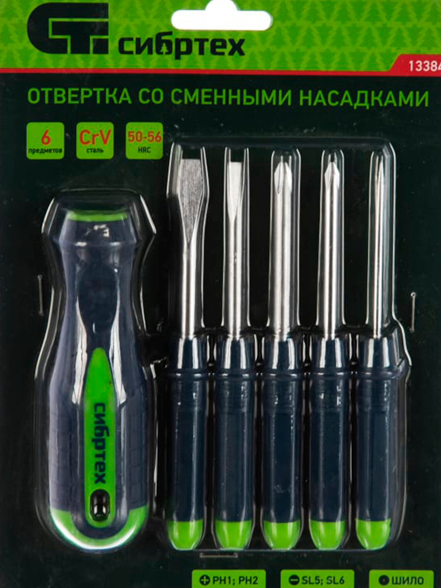 Отвертка Сибртех 13384 со сменными насадками, 5 шт, CrV