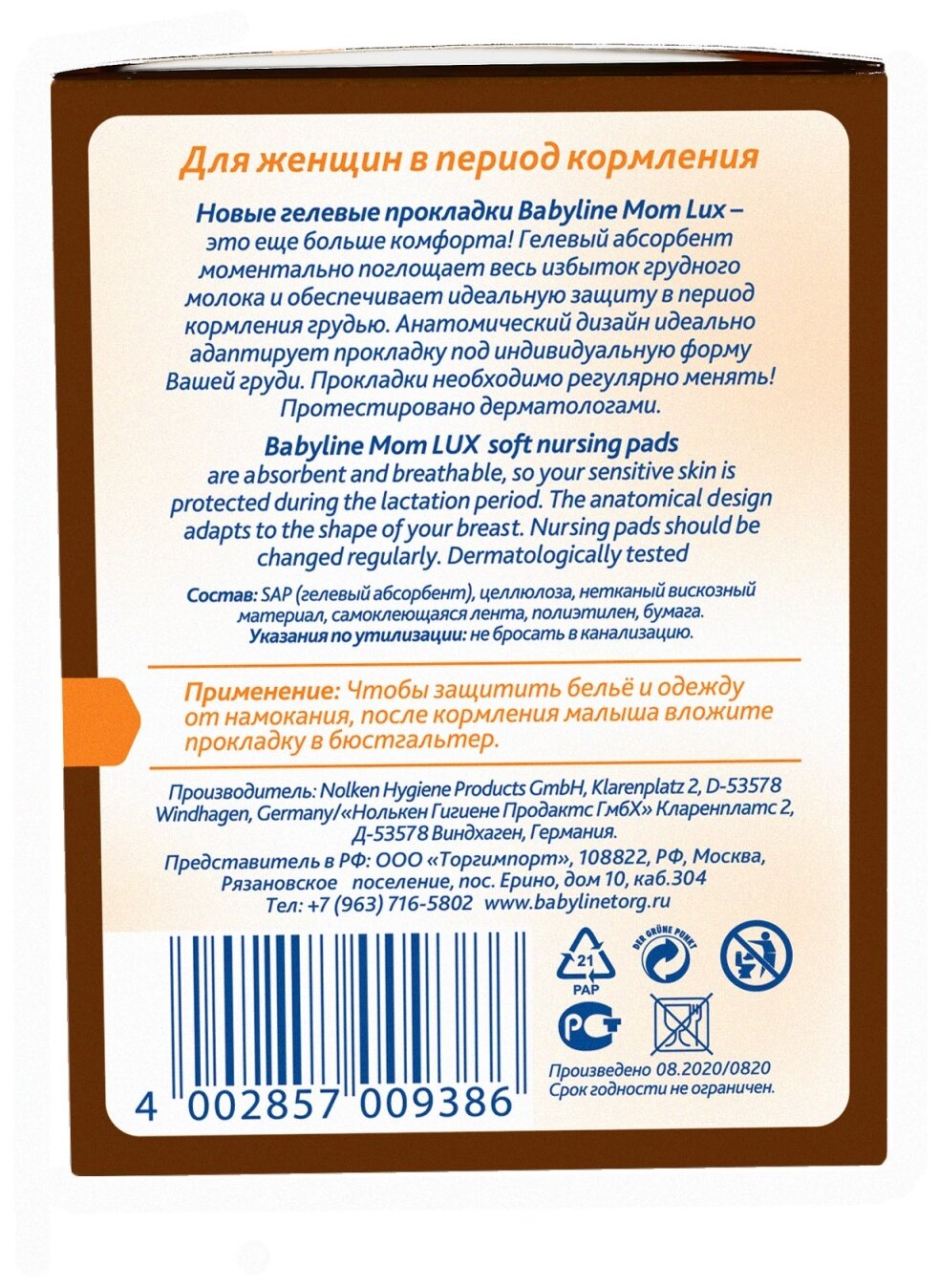BABYLINE Гелевые прокладки для кормящих мам, Германия, 30 шт. информация: