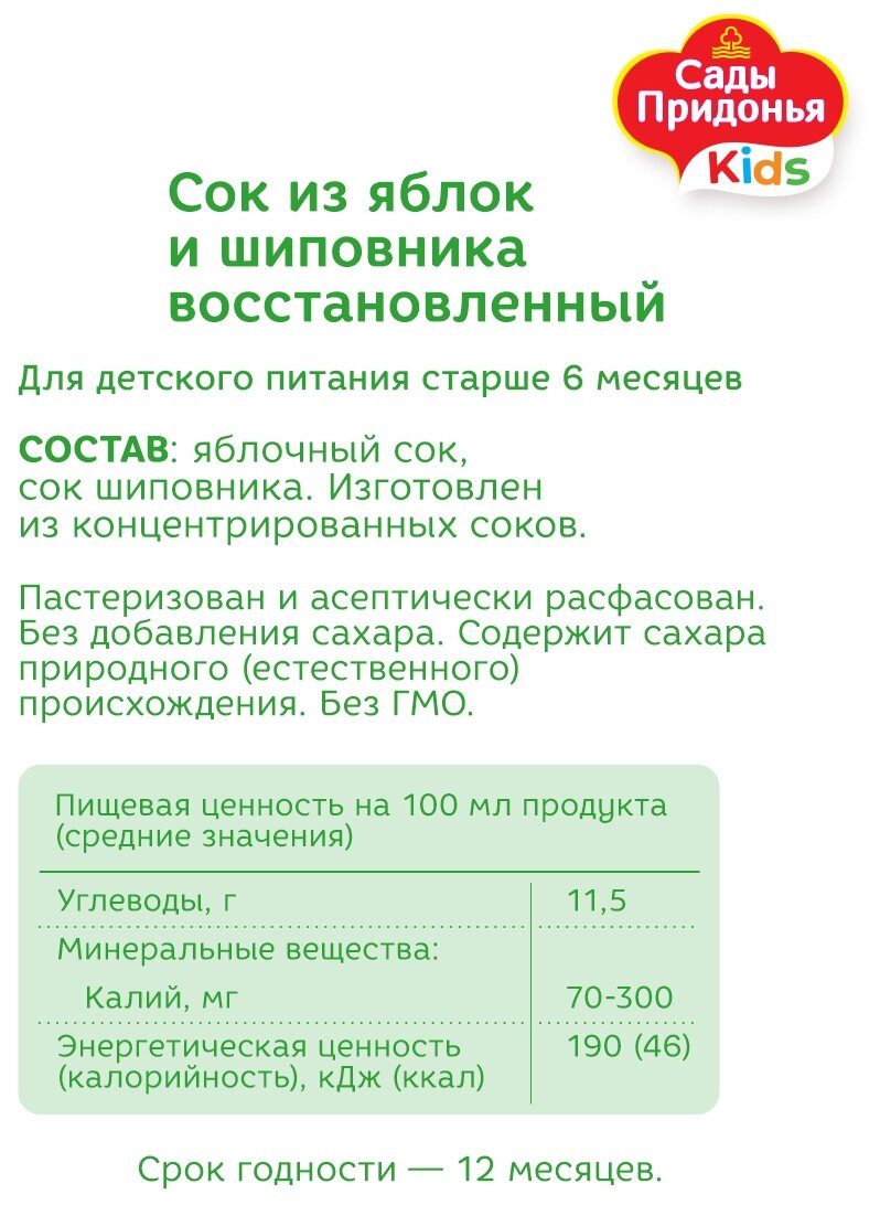 Сады Придонья Сок яблоко-шиповник 0,2л , с 6 мес (27шт) информация: