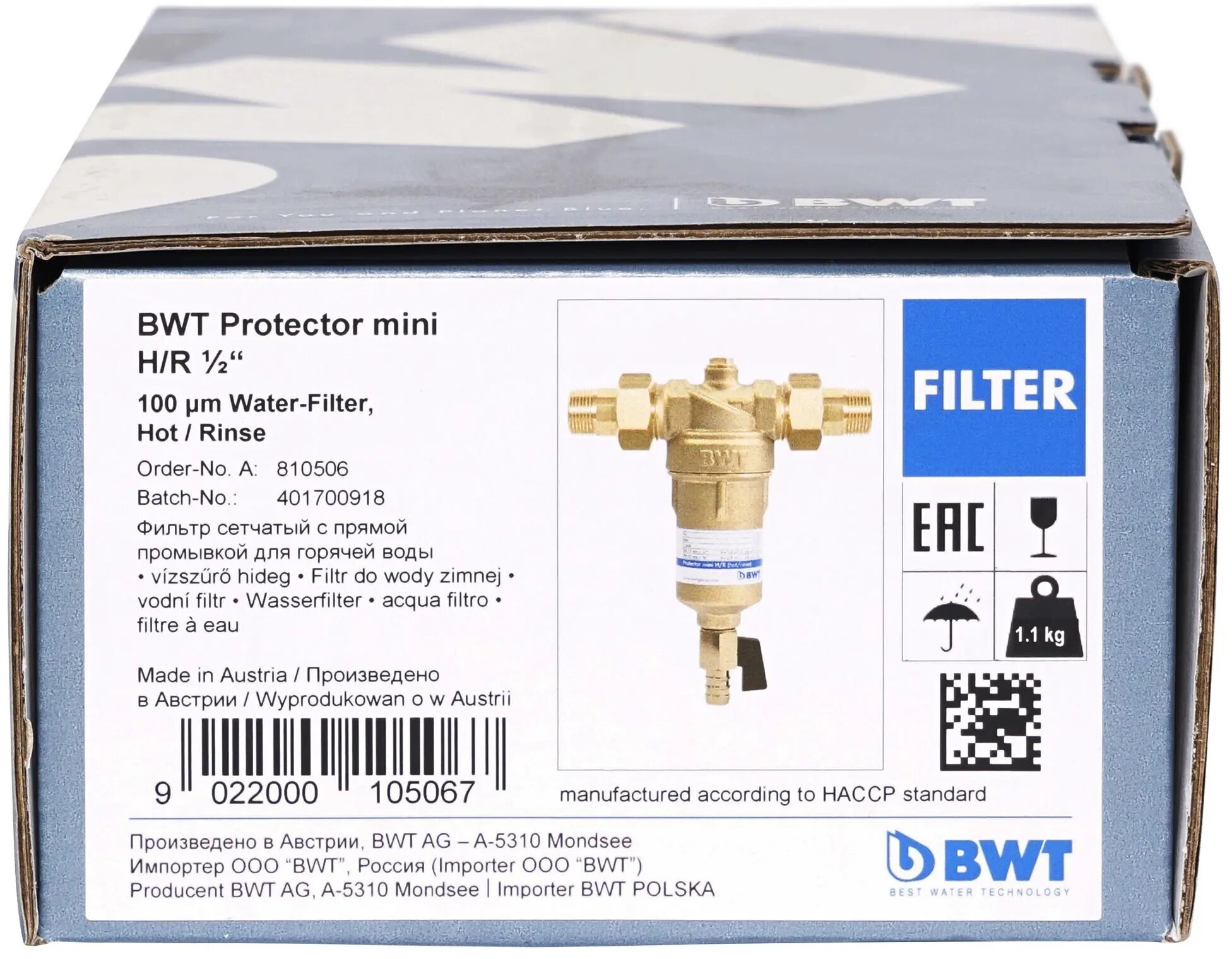 10 цен на Фильтр промывной BWT Protector mini HWS 1/2" 100 мкм латунная колба