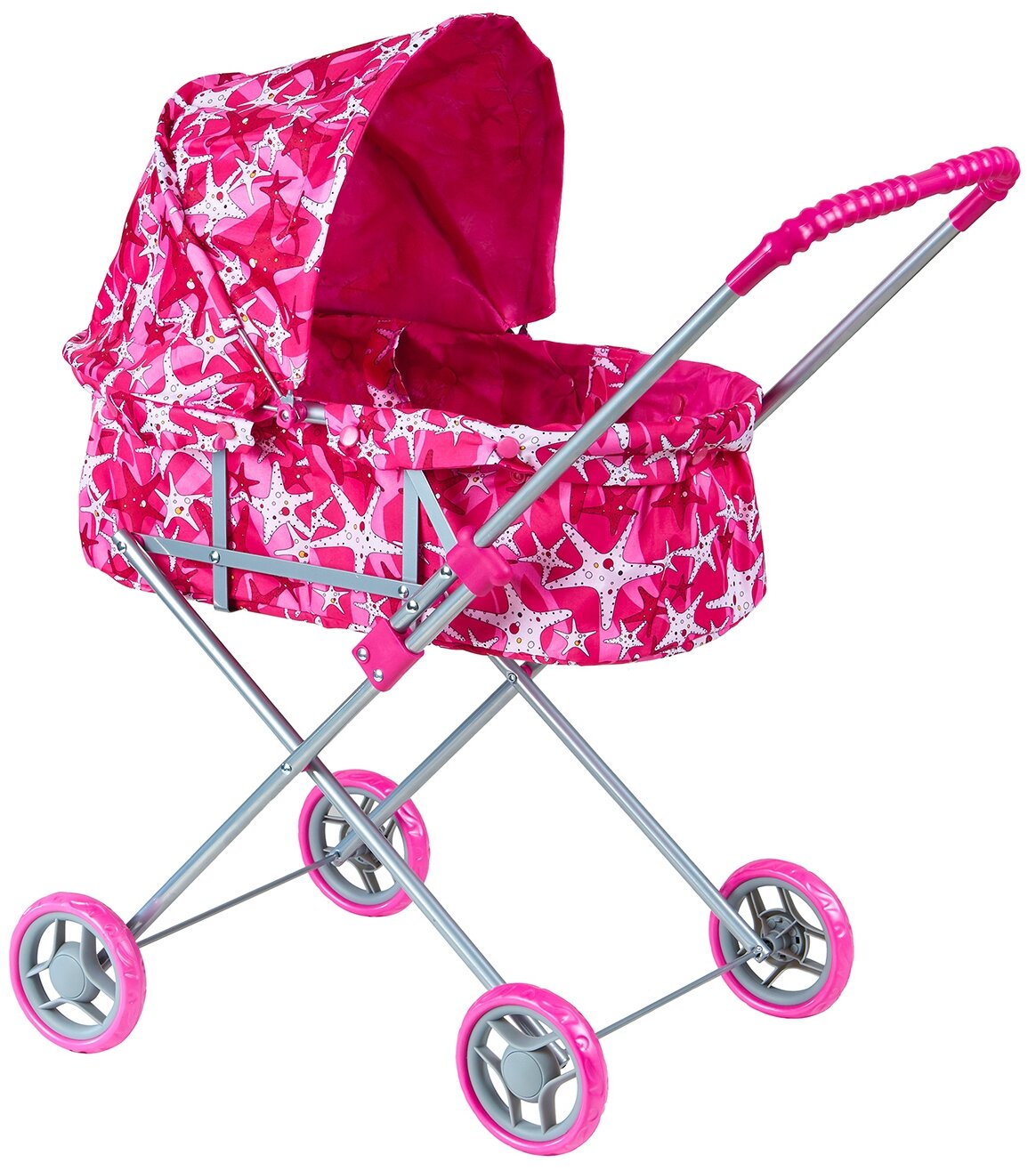 Коляска для куклы Buggy Boom классическая, с регулируемым капюшоном, морские звездочки 65х36х74 см