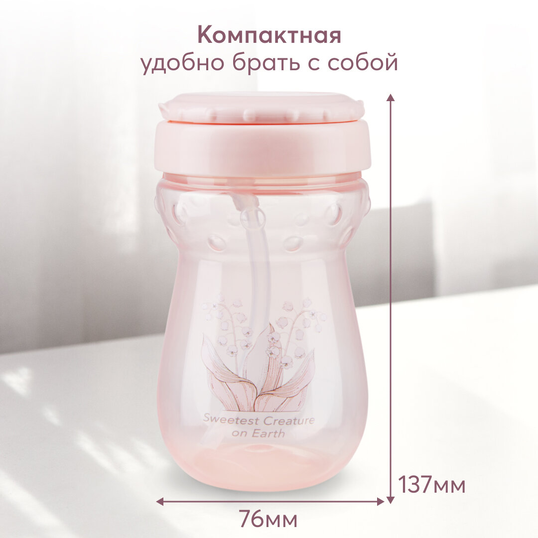 14011, Поильник детский с трубочкой Happy Baby, поильник непроливайка детский 360 мл, розовый