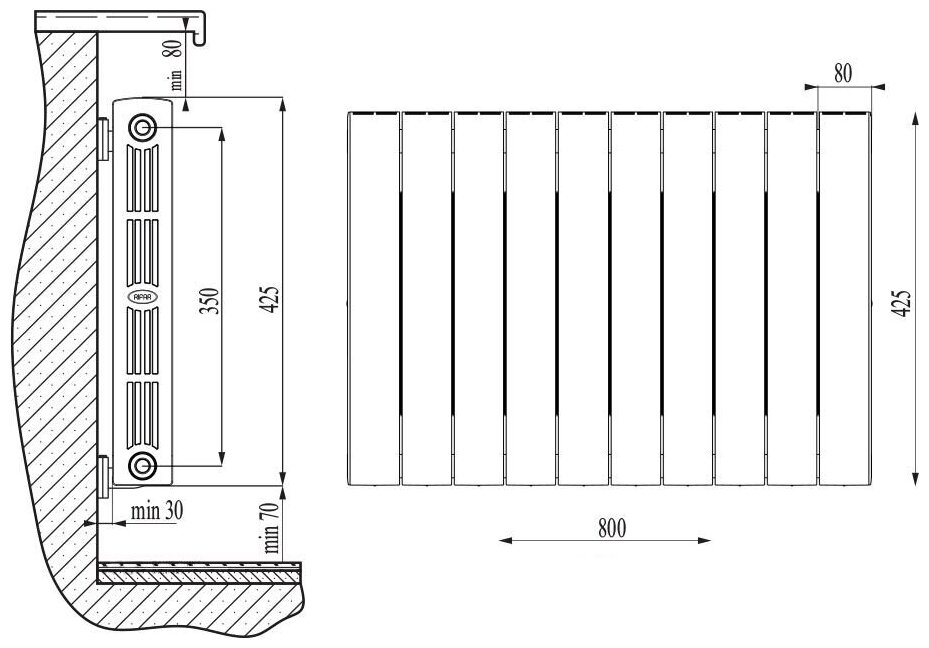 Радиатор секционный Rifar SUPReMO 350, кол-во секций: 10, 15 м2, 1400 Вт, 800 мм.биметаллический информация: